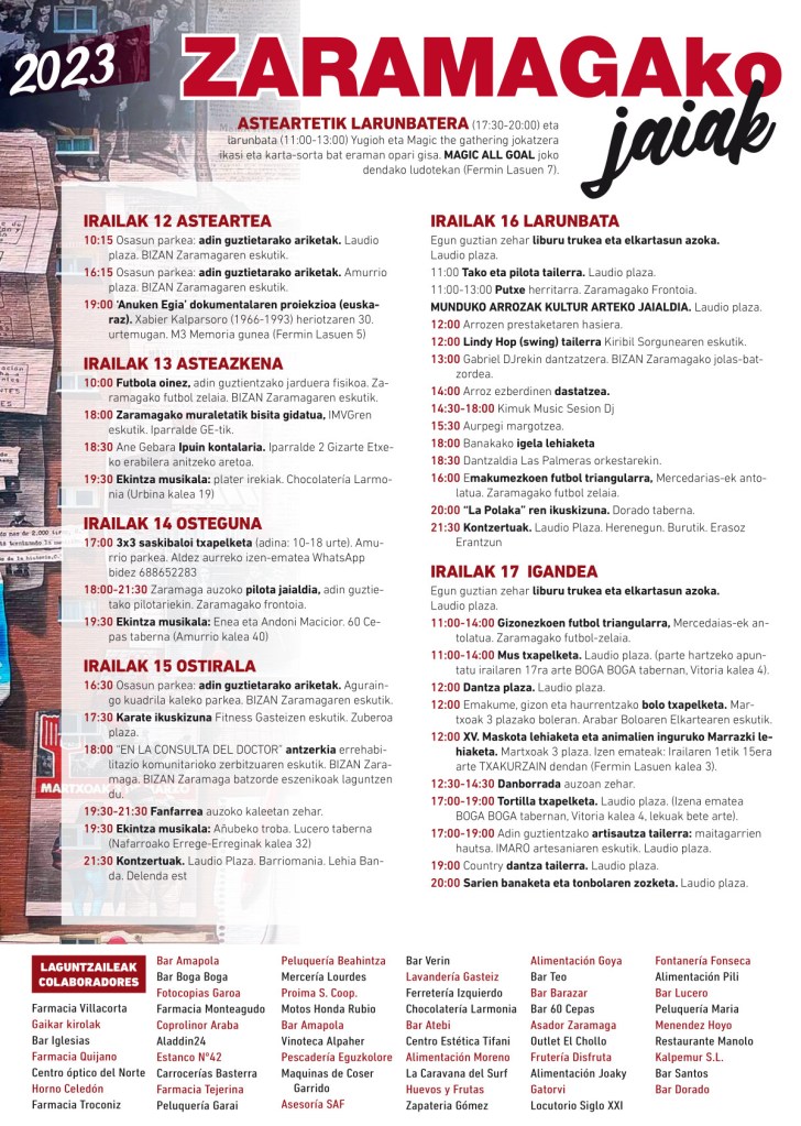 Nada de esto sería posible sin las personas que componen la comisión de fiestas de Zaramaga, así como todos los establecimientos y entidades colaboradoras. Desde aquí nuestro agradecimiento.